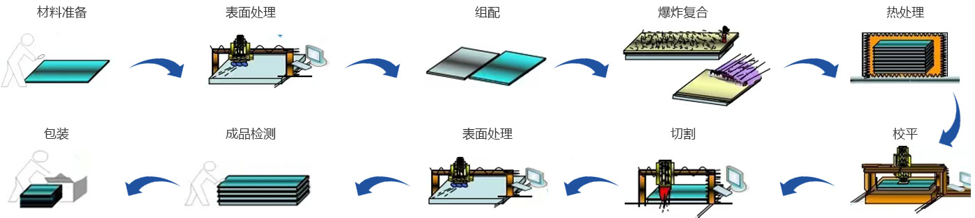 不銹鋼復合板爆炸復合的生產方法?! ”◤秃鲜菍⒉讳P鋼板重疊置于碳鋼基板上,不銹鋼板和碳鋼基板之間用墊子間隔出一定的距離,在不銹鋼板上面平鋪炸藥,炸藥爆炸的能量使不銹鋼板高速撞擊碳鋼基板,產生高溫高壓使兩種材料的界面實現固相結合?! 〔讳P鋼復合板是以碳鋼基層與不銹鋼覆層結合而成的復合板鋼板。它的主要特點是碳鋼和不銹鋼形成牢固的冶金結合,可以進行熱壓、冷彎、切割、焊接等各種加工,有良好的工藝性能。不銹鋼復合板的基層材料可以使用Q235B、Q245R、Q345B,Q345R等各種普通碳素鋼和專用鋼。覆層材料可以使用304、316L、321和雙相不銹鋼等各種牌號的不銹鋼。材質和厚度可以自由組合,滿足不同用戶的需要。不銹鋼復合板已經廣泛應用于石油、化工、鹽業、水利電力等行業。不銹鋼復合板作為一種資源節約型的產品,減少貴重金屬的消耗,大幅度降低工程造價。實現低成本和高性能的***結合,有良好的社會效益。 不銹鋼復合板是怎樣生產的呢?不銹鋼復合板工業化生產主要有兩種方法,爆炸復合和熱軋復合。爆炸復合板的生產工藝是將不銹鋼板重疊置于碳鋼基板上,不銹鋼板和碳鋼基板之間用墊子間隔出一定的距離。不銹鋼板上面平鋪炸藥,炸藥爆炸的能量,使不銹鋼板高速撞擊碳鋼基板,產生高溫高壓使兩種材料的界面實現固相焊接。理想狀態下,界面的每平方毫米的剪切強度可以達到400MPa以上。熱軋復合板工藝是以碳鋼基板和不銹鋼板處于物理純凈狀態,在高度真空條件下進行軋制而成。在軋制過程中兩種金屬擴散實現完全的冶金結合。但是不能解決10mm以上金屬的復合,這種焊接只具有壓軋焊接的特點,不像爆炸焊接融合了壓力焊、熔化焊、和擴散焊的特點,爆炸焊為不同基體金屬的結合提供了更多和更好的條件。正因為如此,同種和異種金屬都可以爆炸焊接以上兩種復合板制造方法都執行GB/T-8165-1977國家標準。該標準非等效采用日本JISG3601-1990標準,主要技術指標相同或高于日本標準?! ∧敲幢◤秃瞎に囂攸c如何呢?爆炸復合的特點:一、由于爆炸復合是冷加工,因此它可以產生100多種金屬復合板,如鈦、銅、鋁等等。二、爆炸復合可以生產不銹鋼復合板總厚度可以達到幾百毫米厚的不銹鋼復合板,不銹鋼復合板兼具各種碳素鋼和不銹鋼的特點,以其優異的性能價格比為用戶歡迎,有廣闊的市場前景。但有趣的是,從五十年代開始,經過半個多世紀風風雨雨的開發過程,仍然有很多人不知道它。更多的人未使用過它。應該說不銹鋼復合板的市場遠未進入成熟期,仍在開發過程中。科技工作者為建設資源節約型社會的探索和努力永遠不會停止。洛陽京久金屬復合材料有限公司致力于各種金屬爆炸復合材料的研究與開發生產,永不停歇的努力滿足社會發展對金屬復合材料的需求。